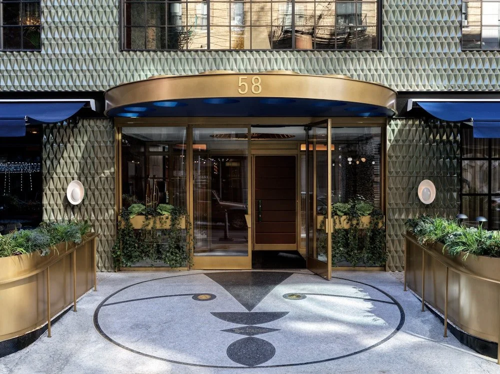 The Penthouse draws inspiration from Halston’s Olympic Tower offices, featuring featuring a wraparound Terrace, Living Room, and Mezzanine Bedroom